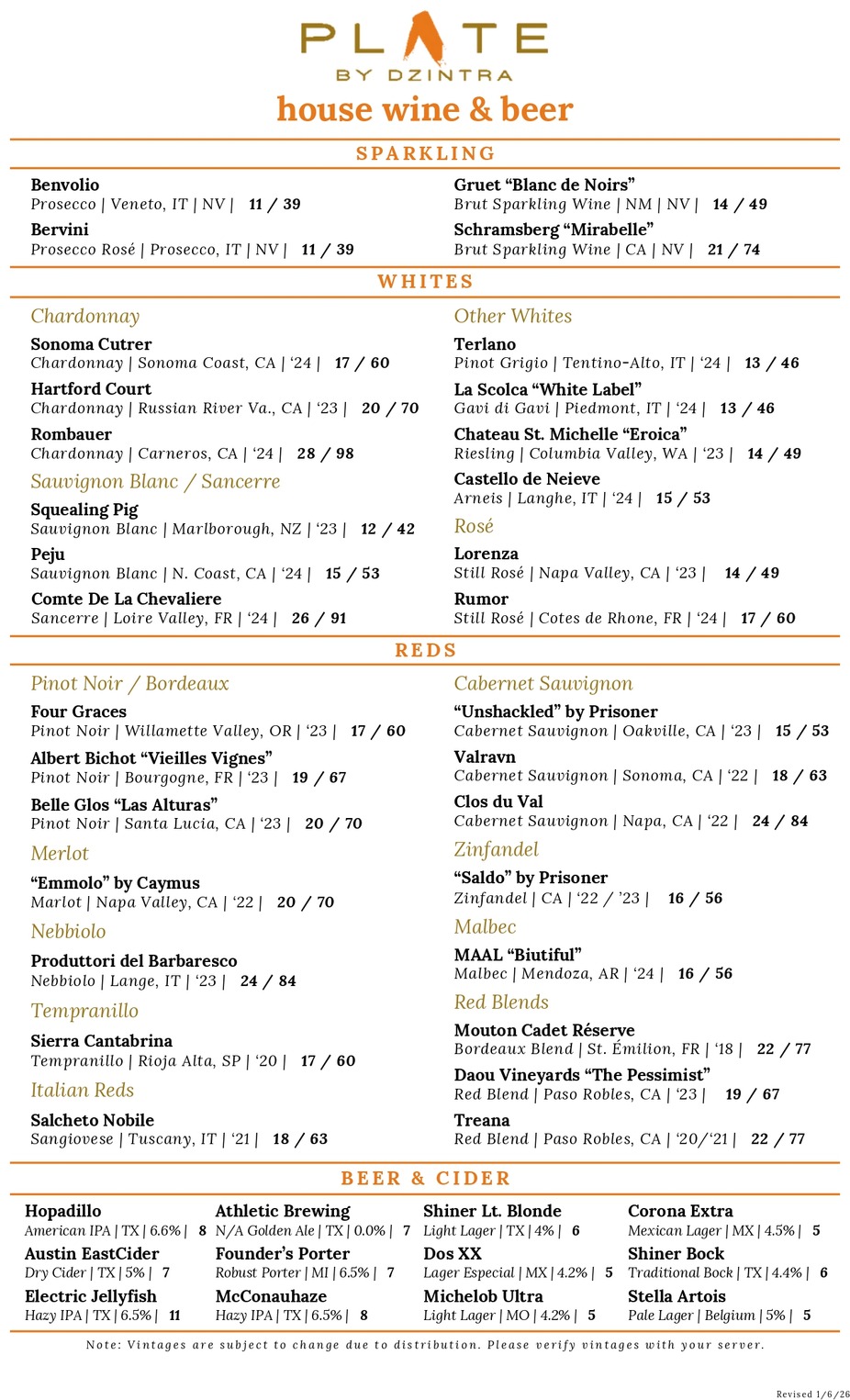 Cocktails, Beer & Wine